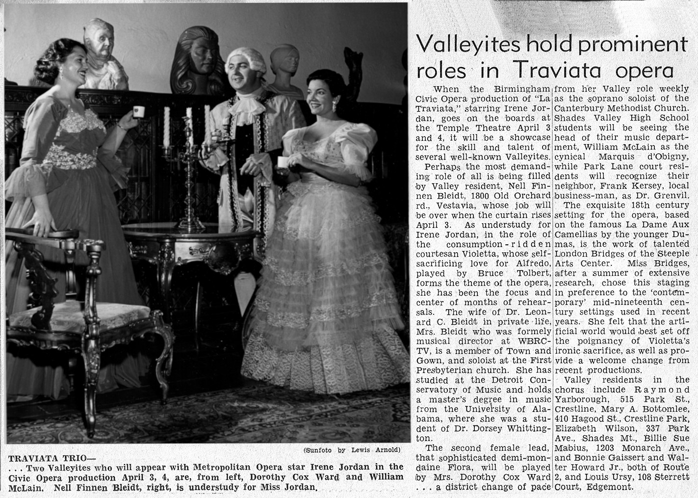 1959 - Understudy to Irene Jordan in Civic Opera production of La Traviata